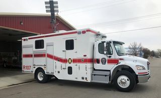 Rescue 4 is set as our main heavy rescue response unit. It responds to a majority of our calls and is also part of our Incident Command Structure. R4 holds our Vehicle Extrication tools, 6 SCBA's, Rope rescue, Ice Rescue, Thermal image Camera, Hazardous Materials, Medical / Trauma Response, and many other pieces of rescue equipment.
